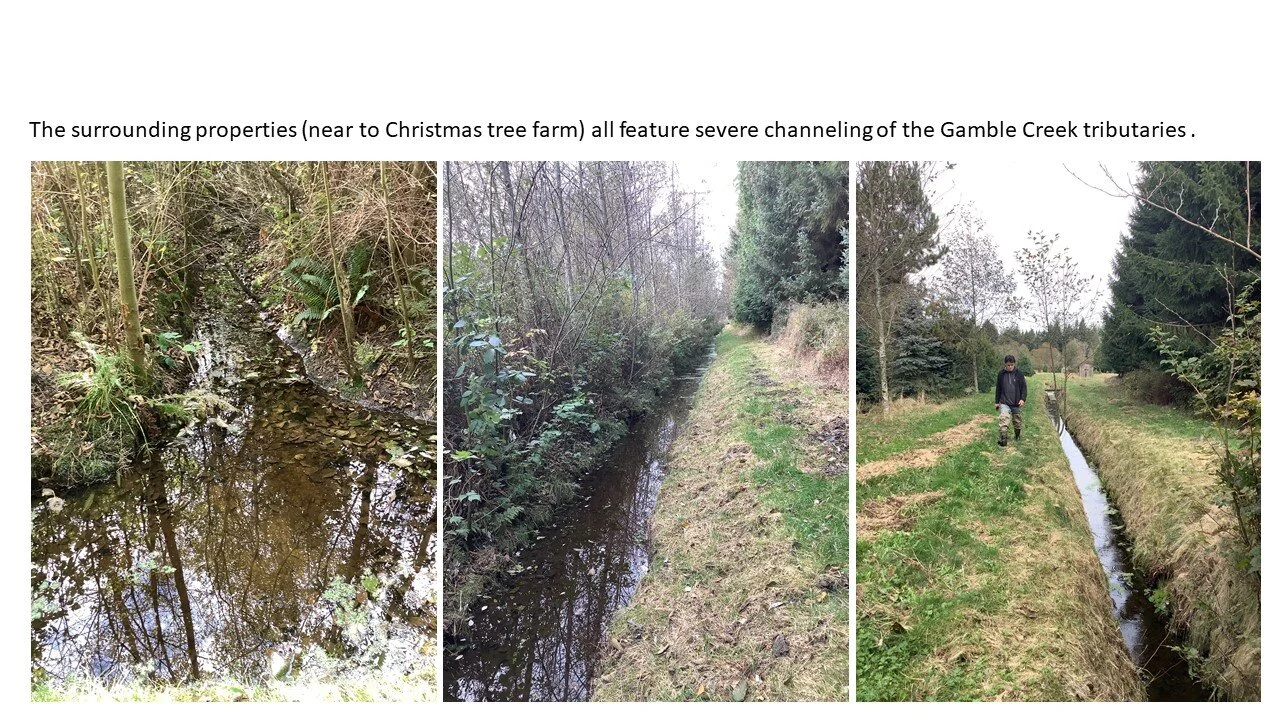 - Gamble Creek supports multiple salmon runs that would benefit from restoring the natural hydrology of the area.